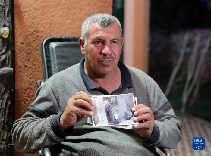 3月6日,在伊拉克北部薩拉赫丁省祖盧耶鎮(zhèn),阿卜杜拉·馬哈茂德·易卜拉欣展示自己家被美軍炸毀后的照片。新華社記者 王東震 攝