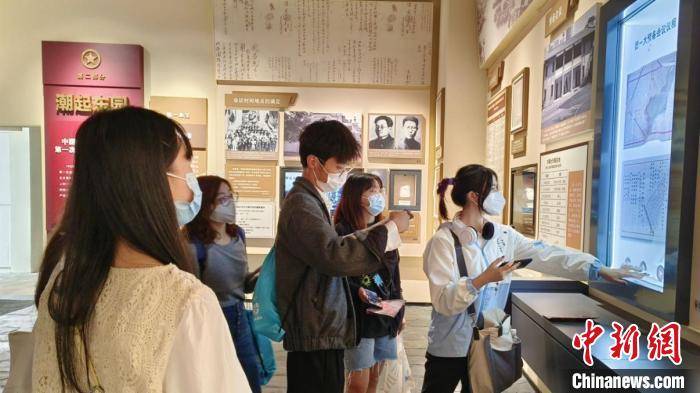 在團(tuán)一大紀(jì)念廣場(chǎng),除了有港澳青年找尋紅色印記的足跡,還有一批文藝青年弘揚(yáng)紅色文化的青春身影。