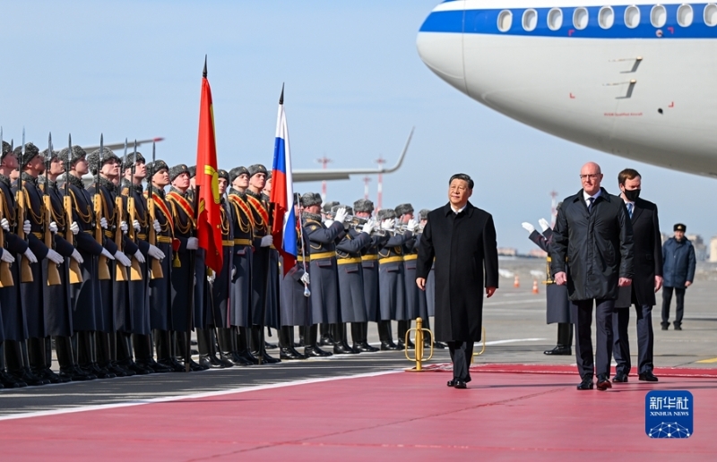 當(dāng)?shù)貢r(shí)間3月20日,國(guó)家主席習(xí)近平乘專機(jī)抵達(dá)莫斯科,應(yīng)俄羅斯總統(tǒng)普京邀請(qǐng),對(duì)俄羅斯進(jìn)行國(guó)事訪問(wèn)。下午1時(shí)許,習(xí)近平乘坐的專機(jī)抵達(dá)莫斯科伏努科沃專機(jī)機(jī)場(chǎng)。習(xí)近平步出艙門(mén)時(shí),俄羅斯副總理切爾內(nèi)申科等政府高級(jí)官員在舷梯旁熱情迎接。俄方在機(jī)場(chǎng)舉行隆重迎賓儀式。軍樂(lè)團(tuán)奏中俄兩國(guó)國(guó)歌。這是習(xí)近平檢閱俄羅斯三軍儀仗隊(duì)并觀看分列式。新華社記者 謝環(huán)馳 攝