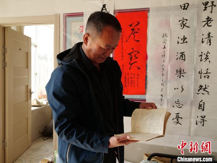 圖為郭成翻看父親的筆記?!『⒅?攝