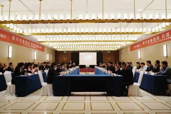 此次“質(zhì)量月”臨沂之行,浙江升華云峰新材股份有限公司、浙江省云峰莫干山家居研究院、浙江云峰莫干山營(yíng)銷有限公司、費(fèi)縣云峰莫干山裝飾材料有限公司、莫干山板材全國(guó)質(zhì)量檢察官、材料商等一眾代表一起出席會(huì)議。