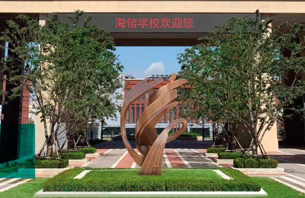 與大多數(shù)企業(yè)跨界教育逐名求利的邏輯不同,海信學(xué)校在三年的發(fā)展軌跡中,也深深地打上海信誠信文化的烙印。在海信學(xué)校入口最醒目的位置,也立著一尊4米高的雕塑,整體造型為一個草書的“信”字?!罢\鑄師道,信育棟梁”,穿梭在校園的每一位老師都以此為標尺。