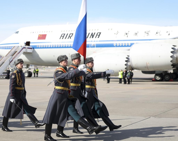 新華社莫斯科3月20日電 3月20日,莫斯科暖陽高照。當天下午,國家主席習近平乘專機抵達莫斯科,開始對俄羅斯進行國事訪問。俄方在機場舉行隆重迎賓儀式。