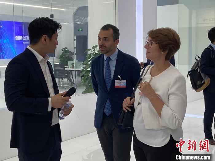 外國團(tuán)員與企業(yè)人員交流?!∥喝A都 攝