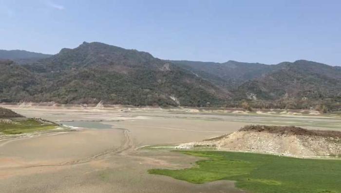 曾文水庫蓄水量減少,底部淤泥裸露、長滿雜草。圖:聯(lián)合新聞網(wǎng)