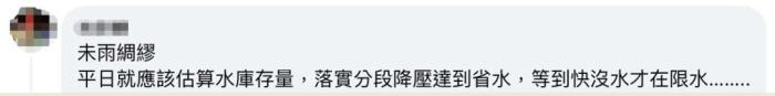 除自然原因外,近年臺灣缺水問題始終難解,更與民進黨當(dāng)局的執(zhí)政不力脫不了干系?! ≡?2日召開的水情討論會上,臺灣“旱災(zāi)中央災(zāi)害應(yīng)變中心”將新竹、苗栗及臺中地區(qū)(含北彰化)水情燈號調(diào)整為代表水情稍緊的“綠燈”,呼吁民眾節(jié)約用水并減少水源耗損;高雄因高屏溪川流量變化大,轉(zhuǎn)為減量供水的“橘燈”。此決定引來網(wǎng)友質(zhì)疑:“平日就應(yīng)該估算水庫存量,落實分段降壓達到省水,等到快沒水才在限水”。