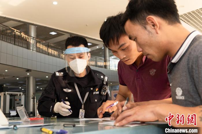 圖為民警引導(dǎo)游客辦理手續(xù)?!∧ズ┻厵z站供圖