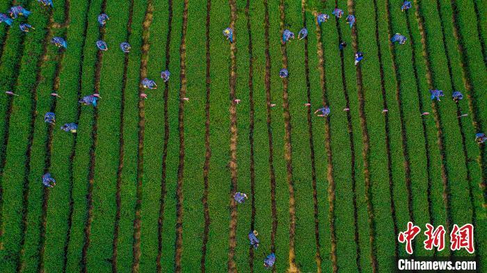 圖為茶農(nóng)們忙采茶?!£惪迫濉z