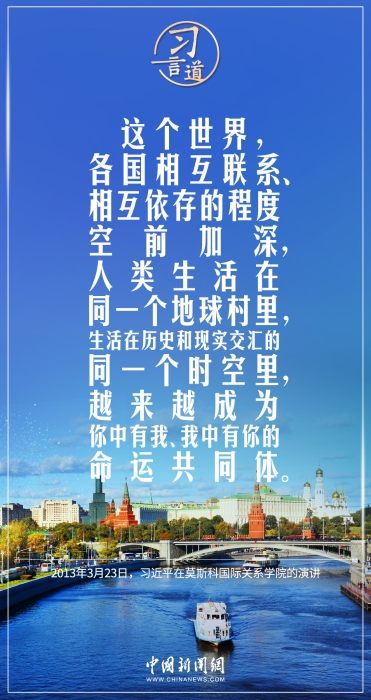 3月20日至22日,國家主席習近平對俄羅斯進行國事訪問。2013年3月,習近平就任中國國家主席后的首訪國就是俄羅斯。那次出訪期間,習主席提出人類命運共同體理念。十年來,習主席在多個場合多次倡導構建人類命運共同體。