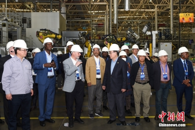 在渝期間,使節(jié)們參觀了重慶市規(guī)劃展覽館、廣陽島,感知重慶規(guī)劃發(fā)展以及城市生態(tài)建設(shè)情況;考察了重慶內(nèi)陸國際物流樞紐展示中心和重慶鐵路集裝箱中心站,見證了中歐班列(成渝)發(fā)車;訪問了重慶海扶醫(yī)療科技股份有限公司、賽力斯汽車兩江智慧工廠等地,現(xiàn)場體驗重慶在科技創(chuàng)新、智能智造等方面的創(chuàng)新與活力。圖為3月22日,駐華使節(jié)代表團在賽力斯汽車兩江智慧工廠焊接車間參觀。中新社記者 何蓬磊 攝