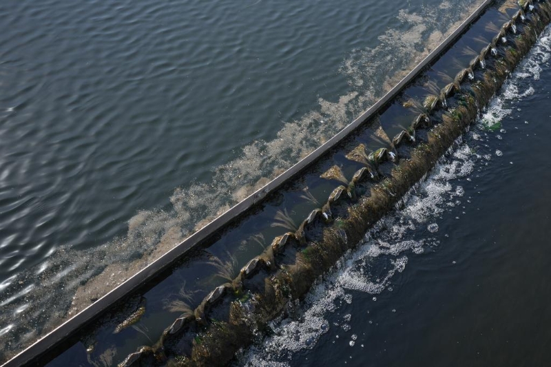 這是沈陽南部污水處理廠二沉池,污水在二沉池通過物理的沉淀作用使泥水得到分離(3月17日攝)。新華社記者潘昱龍攝