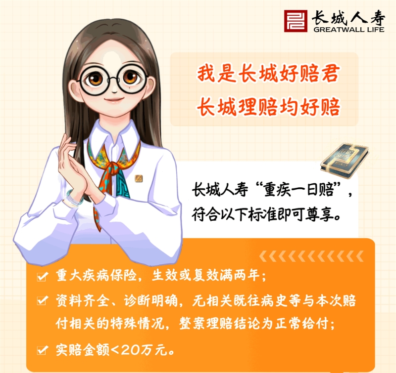 2022年,長(zhǎng)城人壽在行業(yè)首創(chuàng)、重磅打造以真實(shí)理賠員為原型的理賠服務(wù)形象“好賠君”,同步推出理賠服務(wù)舉措“重疾一日賠”,傳遞“好專業(yè)、好便捷、好溫馨”的服務(wù)理念,受到業(yè)界及市場(chǎng)的認(rèn)可。