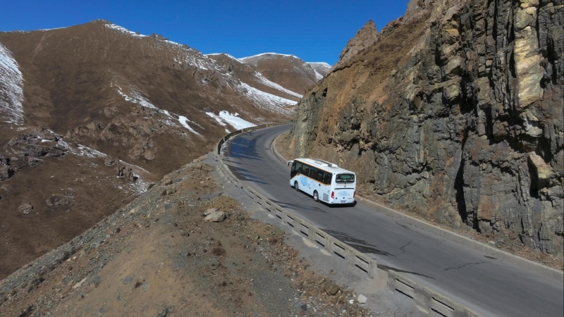 此次巡展穿越平原、丘陵、山地、沙漠四大地形,行駛里程遠、地形復雜,這不僅是對車輛性能的嚴格考驗,也是對駕駛舒適度和操作靈活性的一次“大練兵”。蘇州金龍途悅駕駛員姜師傅說:“途悅這款車爬起雪山來也不含糊,動力是相當足,轉(zhuǎn)彎也很靈活,主要開起來也不費勁”。
