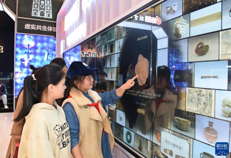 3月27日,兩名小學(xué)生在體驗(yàn)“數(shù)字文博互動(dòng)”項(xiàng)目。