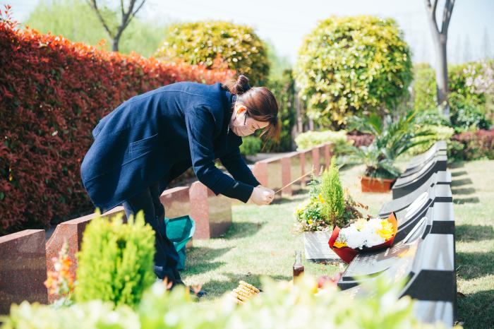 對于一些不能到場緬懷先人的逝者家屬,上海福壽園今年繼續(xù)提供“云祭掃”、“代客祭掃”服務(wù)。工作人員將在墓前轉(zhuǎn)達親人的問候,并完成擦拭墓碑、敬獻鮮花、鞠躬等儀式內(nèi)容,結(jié)束后將現(xiàn)場照片傳達至逝者家屬。