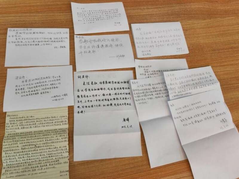 活動還專門為在京學(xué)子們準(zhǔn)備了神秘驚喜,惠州一中黨委書記李海媚帶來了一封封來自母校班主任老師親手寫下的寄語,讓眾多學(xué)子驚喜之余潸然落淚,紛紛提筆給老師們回信。蔣亞瓊老師給她的學(xué)生李暢宇的寄語非常的暖心,“暢宇,你這個‘油腔滑調(diào)’的學(xué)生,老師很懷念與你說笑打趣的高三時光。老師希望你能成為新時代有理想、有擔(dān)當(dāng)、有能力、有家國情懷的新青年!”字里行間透露著老師對自己學(xué)生的自豪感。很多學(xué)生迫不及待的給老師們回信, “余軍老師,在千里之外的北京收到您的教誨,我無比激動,我一直銘記您的教誨‘鐵肩擔(dān)道義,潮頭勇?lián)?dāng)’,在大學(xué)里積極上進,努力學(xué)習(xí),力爭上游,不給您丟臉?!睂W(xué)生歐凌風(fēng)回信說。