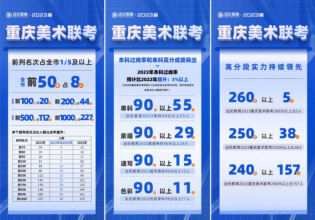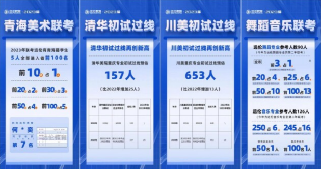 多年來,遠(yuǎn)倫人誨于藝術(shù)教育,砥礪美學(xué)發(fā)展,深耕素質(zhì)教學(xué),用堅(jiān)定的辦學(xué)宗旨使命,厚重的教育思想情懷,專業(yè)的教學(xué)師資團(tuán)隊(duì),獨(dú)特的育人環(huán)節(jié)模式,突出央清、壯大名校、拓展重點(diǎn)、保障本科,全力以赴完成藝術(shù)高考集訓(xùn)質(zhì)量提升目標(biāo),完美取得三年連續(xù)折桂、九年六次奪魁的優(yōu)異成績,2023年,遠(yuǎn)倫教育再次創(chuàng)造出前列名次占全市1/5及以上、多個(gè)前列名次占比人數(shù)比去年提升的好成績,清華美院、川美專業(yè)初試過線人數(shù)預(yù)估再創(chuàng)新高,為一批批學(xué)子搭起了一座通向大學(xué)殿堂的立交橋。