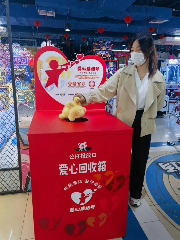 此次由大玩家為在全國門店范圍內(nèi)發(fā)起的“愛心集結(jié)號(hào)”品牌公益活動(dòng),每個(gè)參與公益活動(dòng)的大玩家門店均設(shè)置了“愛心回收站-公仔捐贈(zèng)箱”,鼓勵(lì)全國門店會(huì)員用戶在大玩家抓出公仔后進(jìn)行捐贈(zèng),用戶只需向“愛心回收站-公仔捐贈(zèng)箱”內(nèi)投入一個(gè)公仔即完成捐贈(zèng)行為,用戶捐贈(zèng)成功后門店將為捐贈(zèng)者贈(zèng)送一個(gè)“愛心福袋”,福袋內(nèi)包含愛心徽章一枚、愛心卡等紀(jì)念品,用以感謝用戶對(duì)此次大玩家公益活動(dòng)的支持。