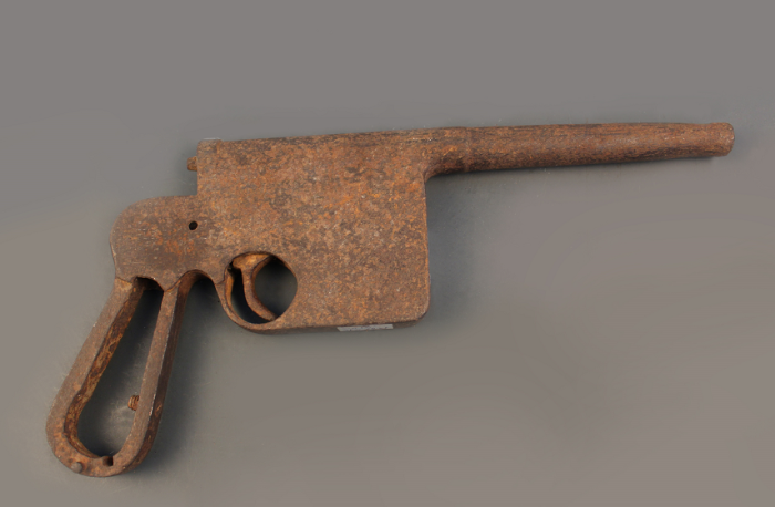 長18厘米,鐵質東北抗日聯(lián)軍自制手槍。