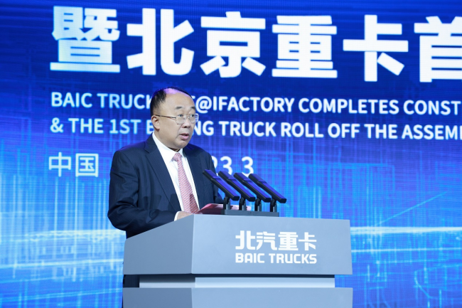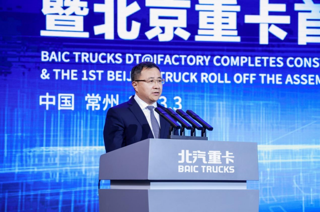 北汽重卡是北汽集團“十四五”期間京外重大投資項目的重要落子,北汽重卡數(shù)字孿生智慧工廠落成投產和北京重卡首臺車下線,標志著北汽集團在重型商用車領域進入了南北布局的全新發(fā)展時代。北汽集團黨委常委、副總經理蔣自力在致辭中表示,北汽集團將全力支持北汽重卡以先鋒者的姿態(tài),堅持戰(zhàn)略引領和創(chuàng)新驅動,直面市場競爭,不斷提升客戶體驗,為繼續(xù)領跑中國商用車市場奠定堅實基礎。
