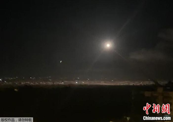 資料圖:2019年11月,敘利亞防空系統(tǒng)攔截以色列導彈。