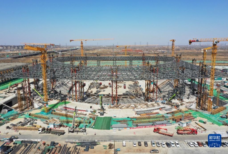 這是位于雄安新區(qū)啟動區(qū)的雄安體育中心項目現場(2023年3月15日攝,無人機照片)。新華社記者 朱旭東 攝