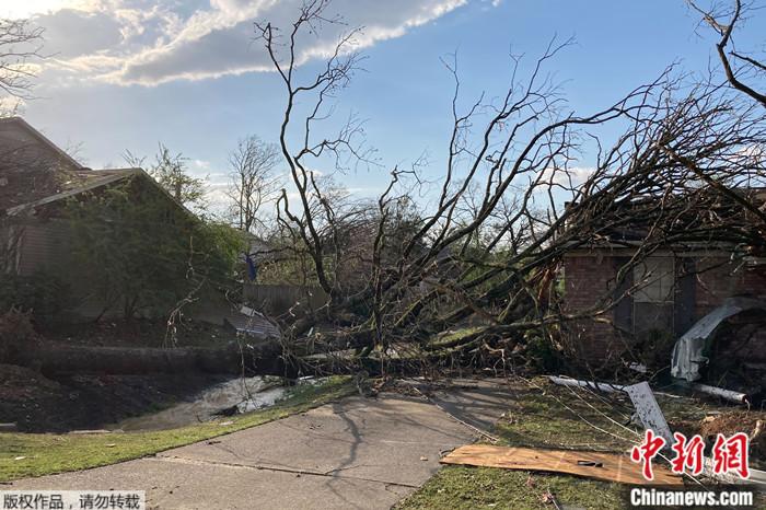 2023年3月31日,龍卷風(fēng)橫掃美國(guó)阿肯色州小石城,樹木被折斷。