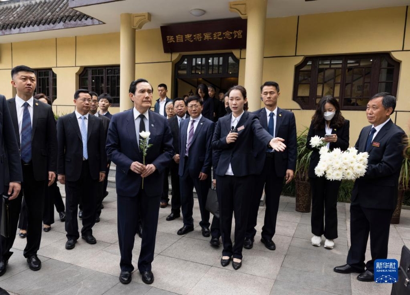 儀式前,馬英九一行在張自忠將軍紀念館詳細了解張自忠生平、事跡。馬英九神情凝重,聚精會神傾聽講解,觀看史料,不時詢問。在展出的文物和歷史圖片前,臺灣青年學生駐足思索,輕聲交流感想。