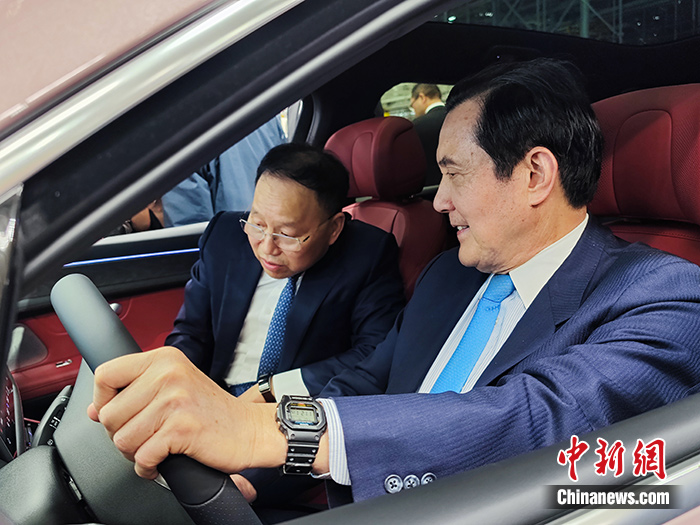 來到賽力斯汽車兩江智慧工廠,馬英九坐上賽力斯與華為合作的新能源車體驗,并且豎起大拇指夸贊感覺很舒適,一同前來的臺灣青年學生則在各種車型前拍照“打卡”。