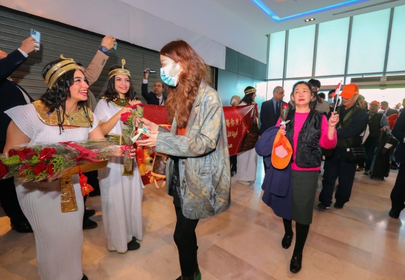 1月20日,中國(guó)游客到達(dá)埃及開羅國(guó)際機(jī)場(chǎng)后受到熱情歡迎。當(dāng)日,在中國(guó)傳統(tǒng)節(jié)日春節(jié)來臨之際,埃及再度迎來中國(guó)旅行團(tuán)。