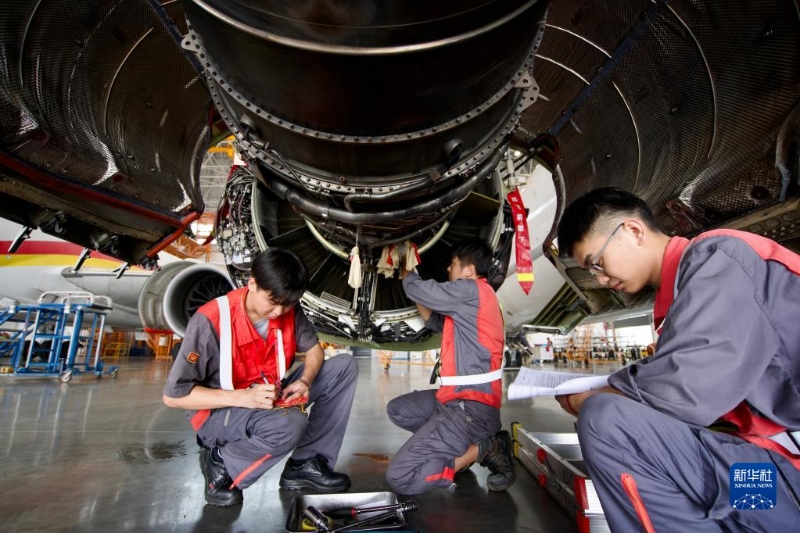 4月4日,在海南自貿(mào)港一站式飛機維修產(chǎn)業(yè)基地內(nèi),進(jìn)境飛機接受飛機發(fā)動機、應(yīng)急設(shè)備等多項檢修項目。