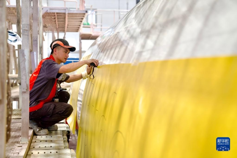 4月3日,在海南自貿(mào)港一站式飛機維修產(chǎn)業(yè)基地內(nèi),機務(wù)噴涂人員給進(jìn)境飛機安裝機身噴涂模板。