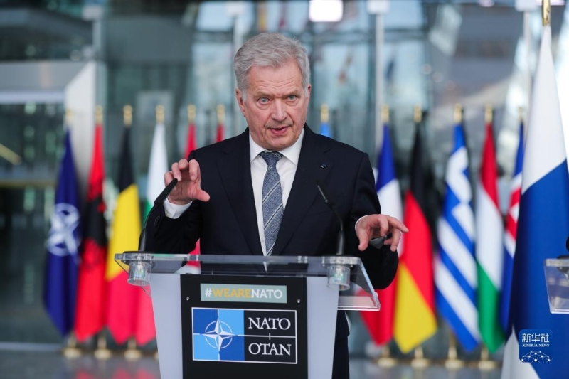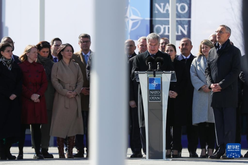 4月4日,在比利時布魯塞爾的北約總部,芬蘭總統(tǒng)尼尼斯托對媒體發(fā)言。