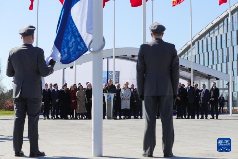 北大西洋公約組織(北約)4日下午在其位于布魯塞爾的總部舉行芬蘭加入北約儀式。芬蘭成為北約第31個成員國。新華社記者鄭煥松攝
