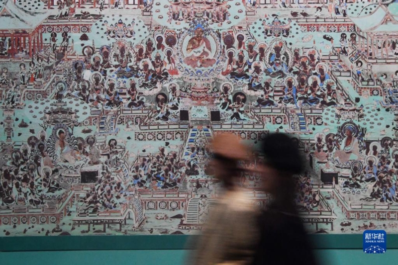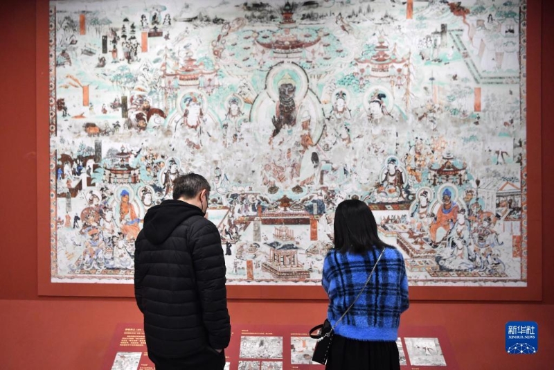 4月5日,觀眾在敦煌研究院蘭州分院敦煌藝術(shù)館參觀。