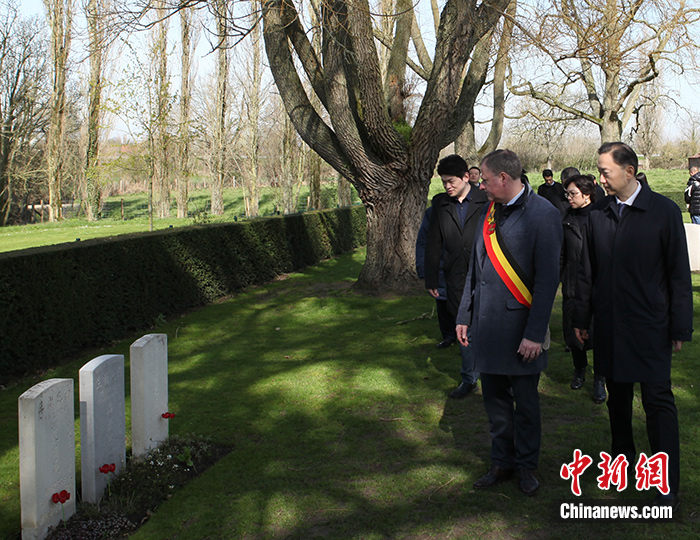 中新社比利時(shí)波普林格4月5日電 (記者 德永健)4月5日清明節(jié),中國(guó)和比利時(shí)官員來到曾經(jīng)的一戰(zhàn)主戰(zhàn)場(chǎng)比利時(shí)波普林格市,祭掃長(zhǎng)眠在此的一戰(zhàn)華工。
