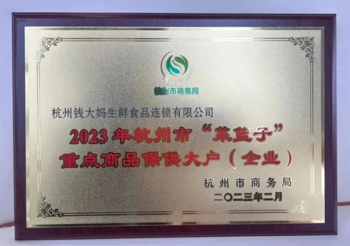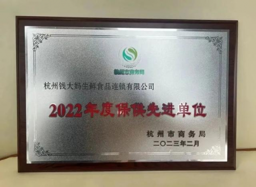 3月14日-15日,杭州市商務(wù)局在杭州千島湖召開(kāi)2022年度保供先進(jìn)單位及個(gè)人表彰大會(huì),同時(shí)舉行2023年保供重點(diǎn)企業(yè)簽約儀式。錢(qián)大媽?xiě){借在疫情期間保供穩(wěn)價(jià)、勇?lián)鐣?huì)責(zé)任的表現(xiàn),榮獲“2022年度保供先進(jìn)單位”,并獲評(píng)“2023年度杭州市‘菜籃子’重點(diǎn)商品保供大戶(hù)(企業(yè))”。