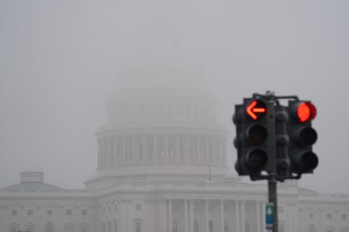 霧中的美國(guó)國(guó)會(huì)大廈。新華社記者 劉杰 攝