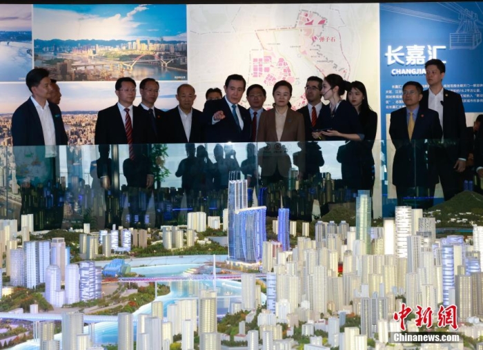 4月3日,馬英九一行參觀重慶市規(guī)劃展覽館。該館通過平面展板、多媒體屏幕、互動平臺、大小模型、復(fù)原場景等多種展陳形式,突出主城都市區(qū)沙盤、重慶歷史沉浸式空間、“重慶味”中庭、飛躍重慶、大禮堂大型模型、VR影院等展項,深度展示了重慶市各方面規(guī)劃,以及山川河岳、文華淵藪、風(fēng)土人情、發(fā)展成就等內(nèi)容。圖為馬英九參觀主城都市區(qū)沙盤。中新社記者 路梅 攝