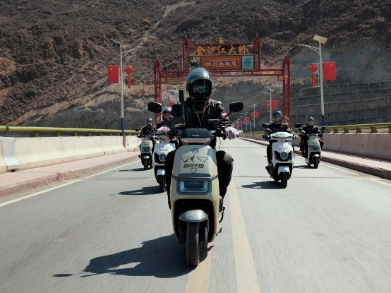 圖:愛(ài)瑪騎行車(chē)隊(duì)行駛在金沙江大橋