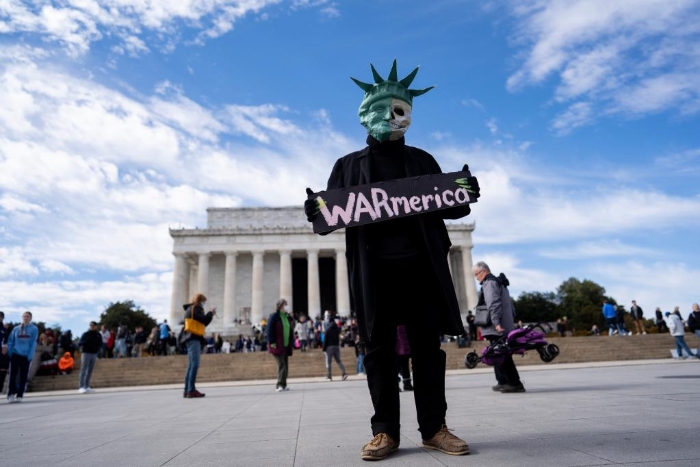 今年2月19日,烏克蘭危機(jī)升級(jí)一周年前夕,美國(guó)上千名反戰(zhàn)人士在位于首都華盛頓的林肯紀(jì)念堂前集會(huì),反對(duì)美國(guó)挑動(dòng)俄烏沖突,要求解散北約、削減美國(guó)軍費(fèi)。