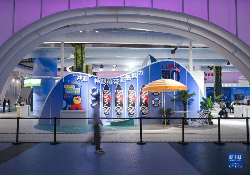 這是第三屆中國(guó)國(guó)際消費(fèi)品博覽會(huì)一處展臺(tái)(4月8日攝)。