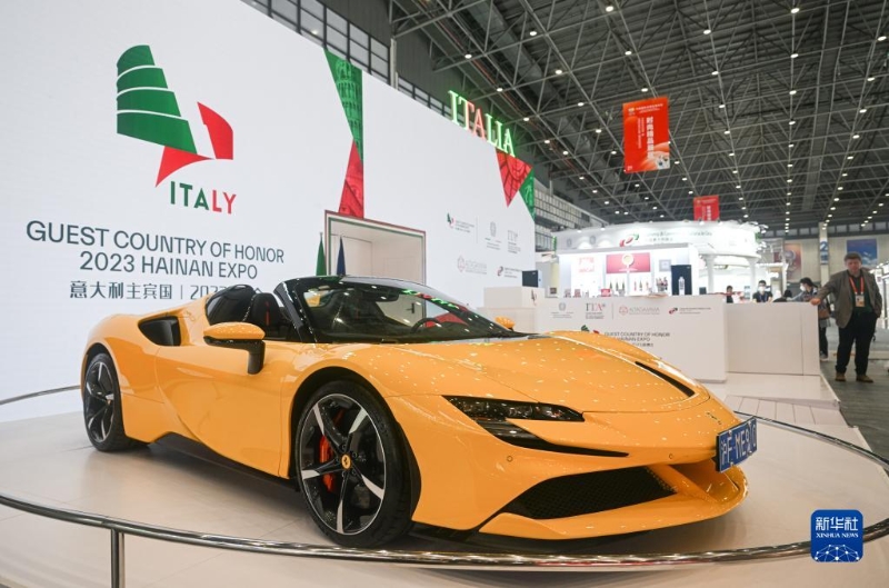 這是第三屆中國(guó)國(guó)際消費(fèi)品博覽會(huì)意大利主賓國(guó)展臺(tái)(4月8日攝)。