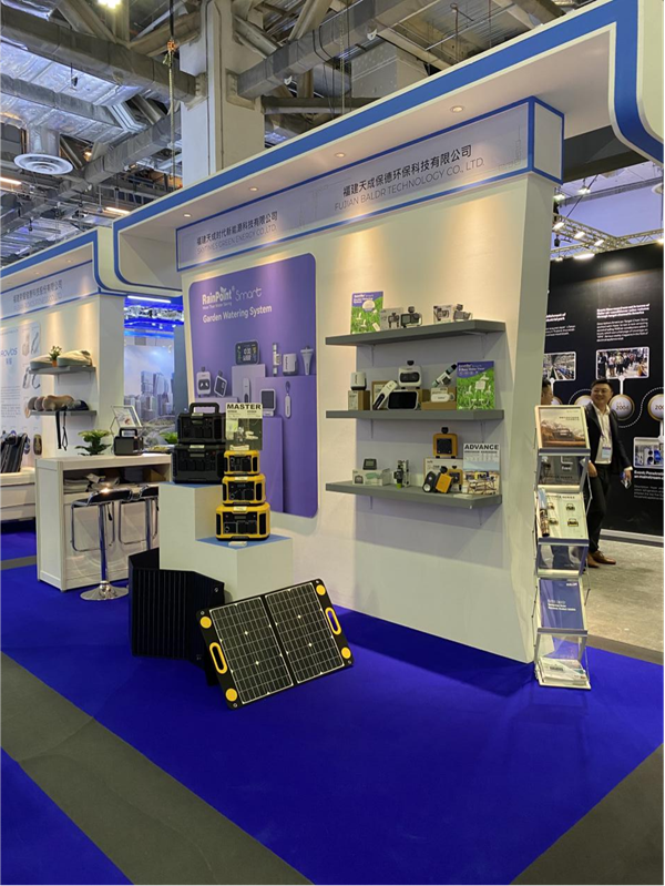 福建天成時代新能源科技有限公司帶來便攜式儲能電源、便攜式太陽能板等相關產品參展。(企業(yè)供圖)