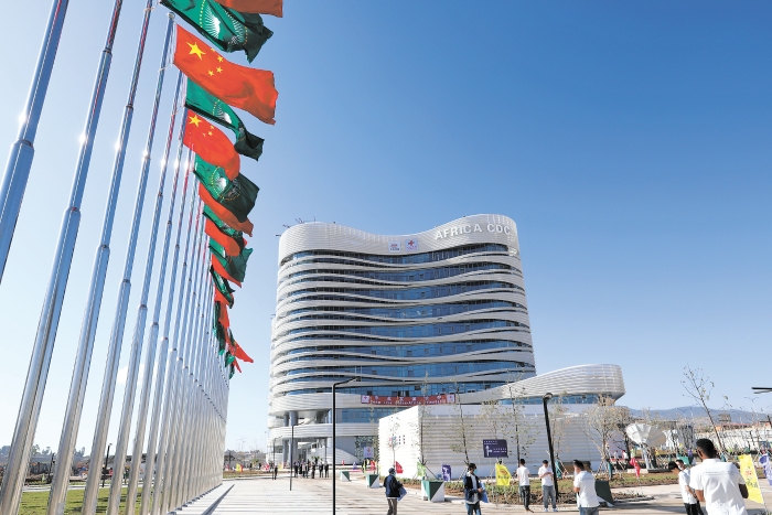 在埃塞俄比亞首都亞的斯亞貝巴拍攝的由中國援建的非洲疾控中心總部大樓。 新華社發(fā)