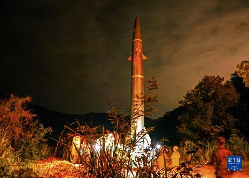 這是演練前夜參演火箭軍某部在進行轉(zhuǎn)載導(dǎo)彈訓(xùn)練(4月7日攝)。新華社發(fā)(劉明松 攝)