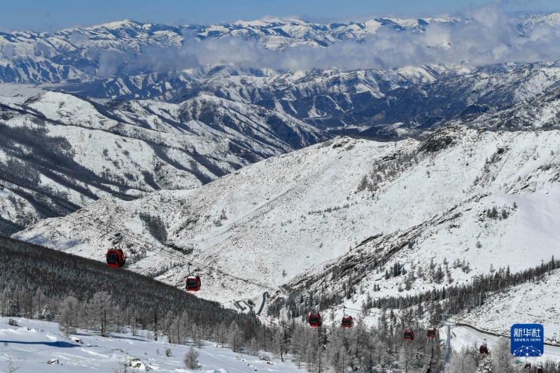 觀光纜車在新疆阿爾泰山脈腹地運行(4月9日攝)。