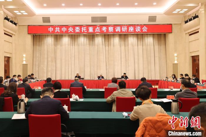 民盟中央主席丁仲禮近日率調(diào)研組赴湖南開展重點考察調(diào)研。圖為考察調(diào)研座談會現(xiàn)場?!∶衩酥醒牍﹫D