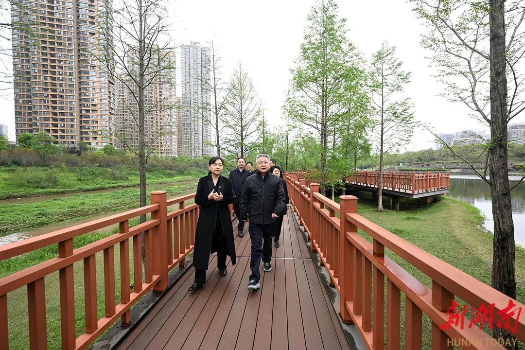4月6日,湖南省委書記沈曉明實地察看圭塘河流域綜合治理情況。圖片來源:湖南日報