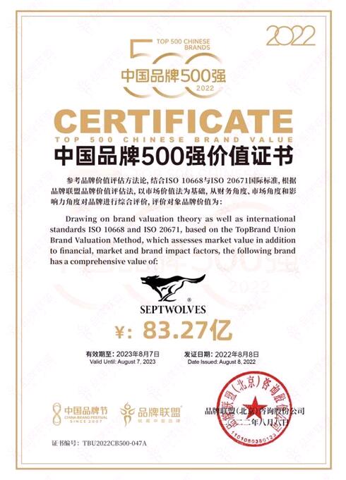 向下扎根,生長出穩(wěn)固的根須,也回饋給了七匹狼充足的滋養(yǎng)——直至2022年,七匹狼已連續(xù)22年榮獲中國夾克市場綜合占有率榜首。報告期內(nèi),七匹狼以83.27億元價值,榮獲中國品牌500強價值認證。